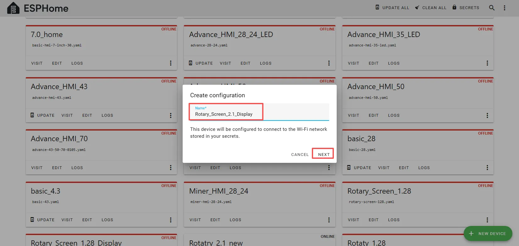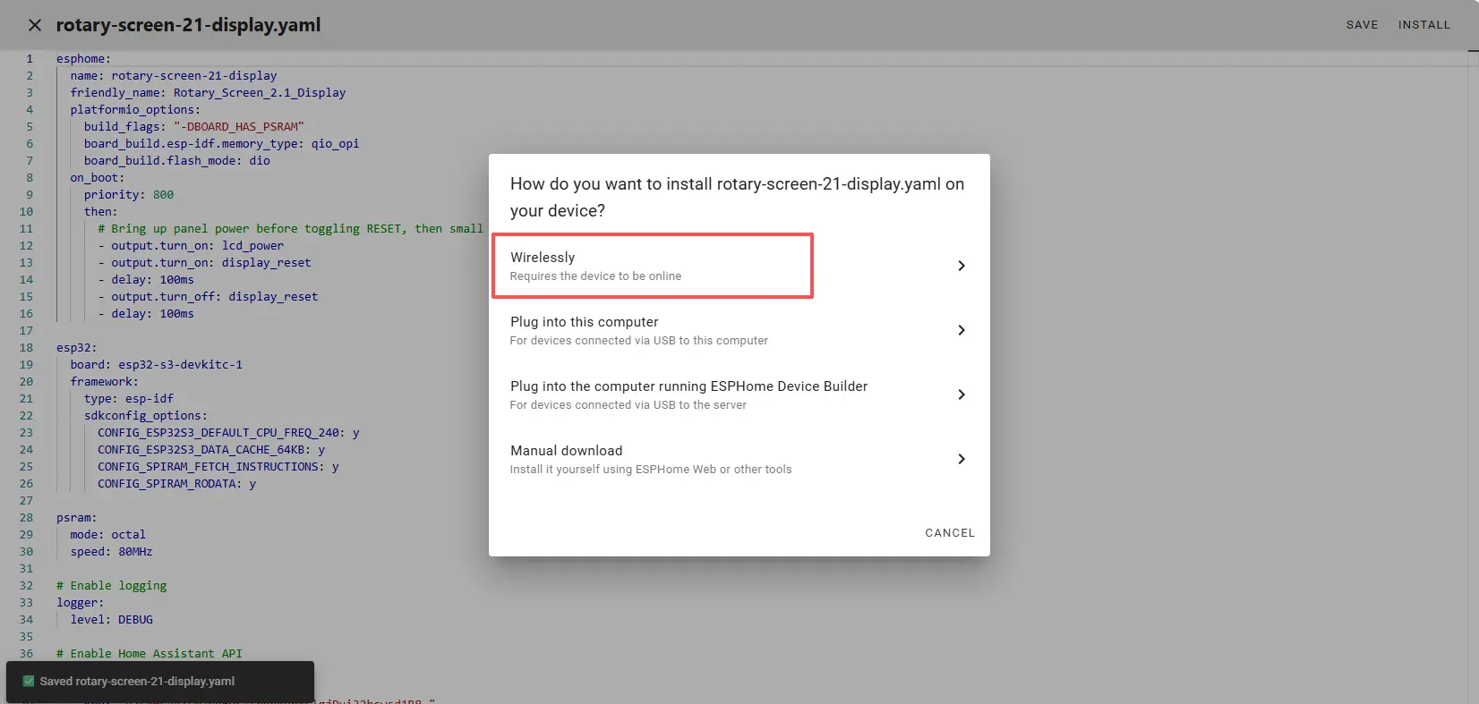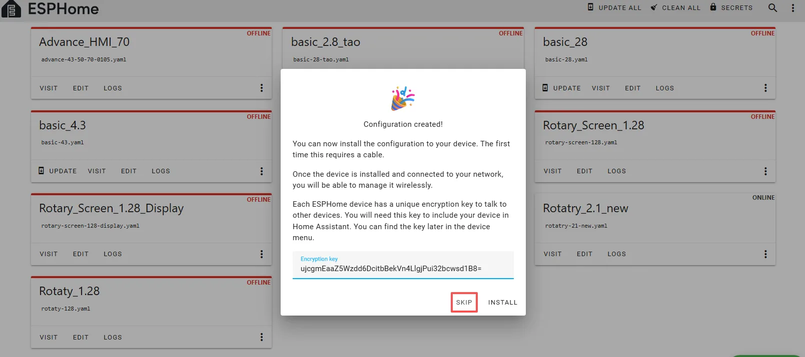 After connecting the CrowPanel 2.1inch-HMI ESP32 Rotary Display, click “Install”.