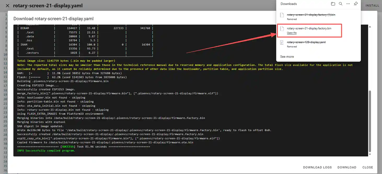 Next, we will flash this .bin file into the CrowPanel 2.1inch-HMI ESP32 Rotary Display.