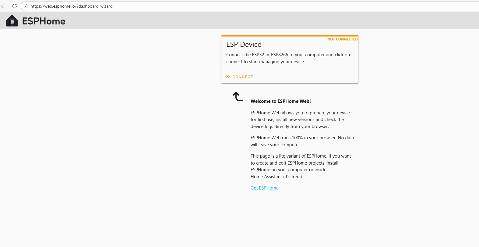 Open the following website: https://web.esphome.io/?dashboard_wizard