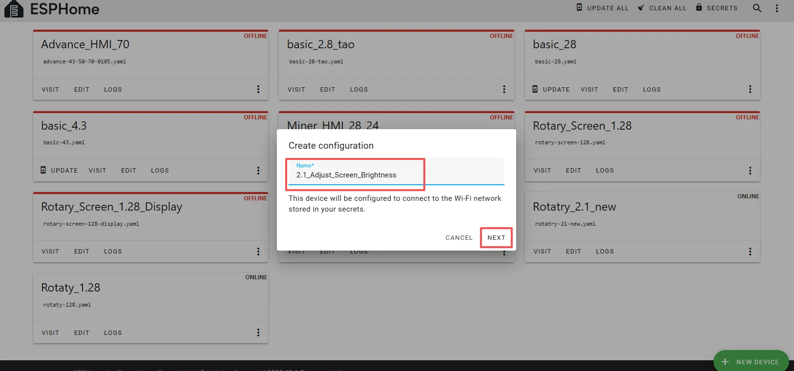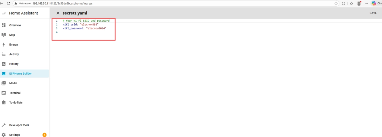 Here, our Wi-Fi account and password are set on the ESPHome main page.