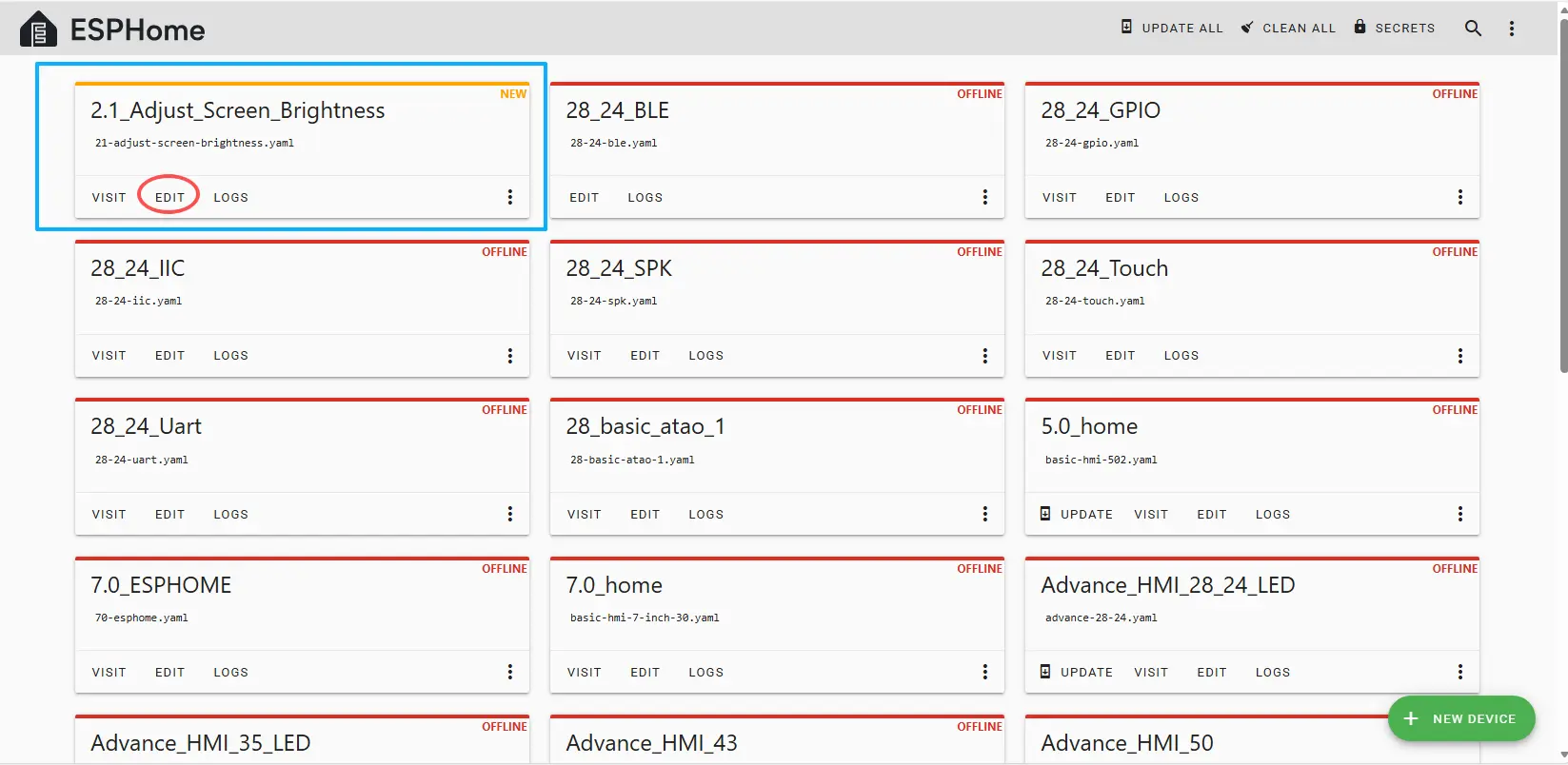 Then, return to the main interface, find the 2.1_Adjust_Screen_Brightness you just created, click "EDIT," and enter the code editor.