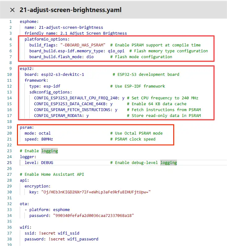 Next, you can replace the relevant content in ESPHome and ESP32 as needed, and add the item "PSRAM."