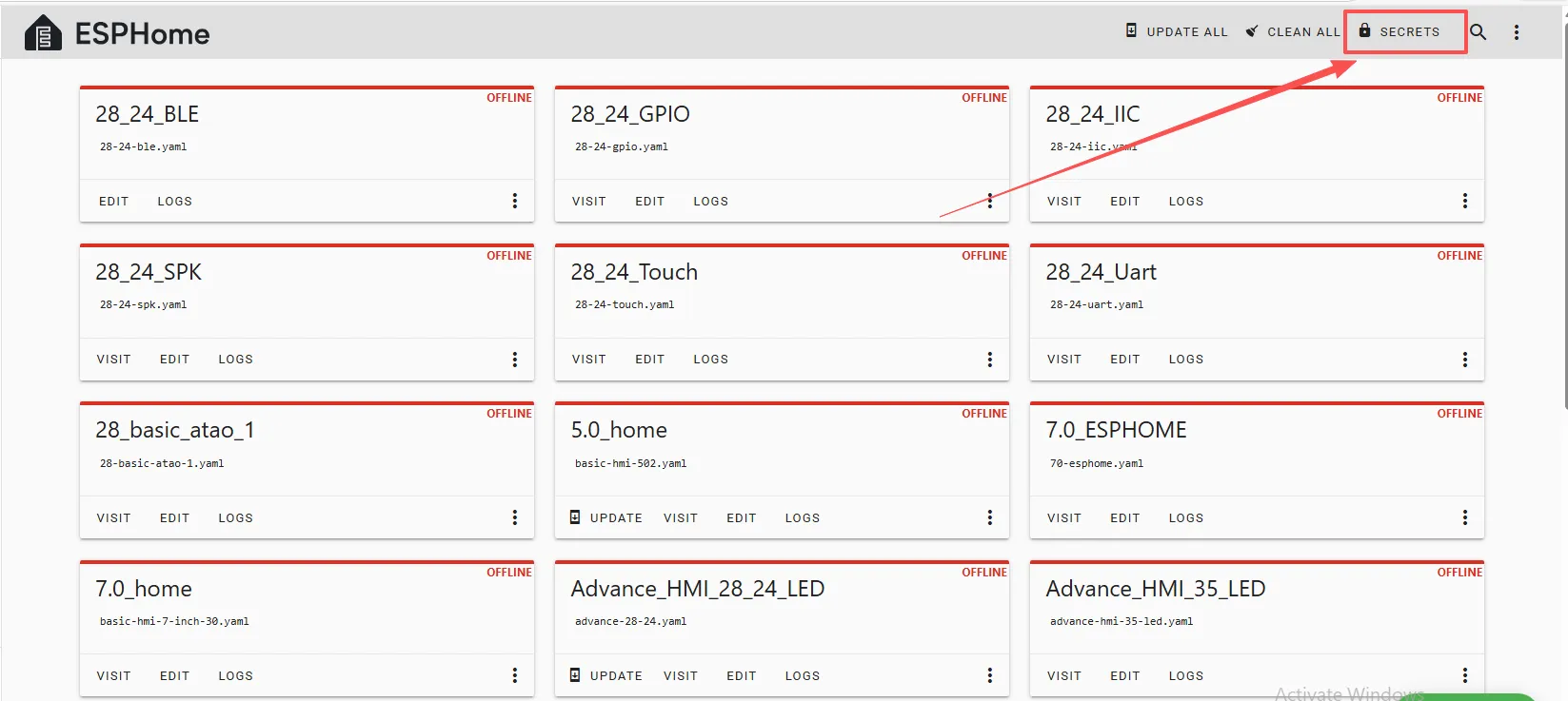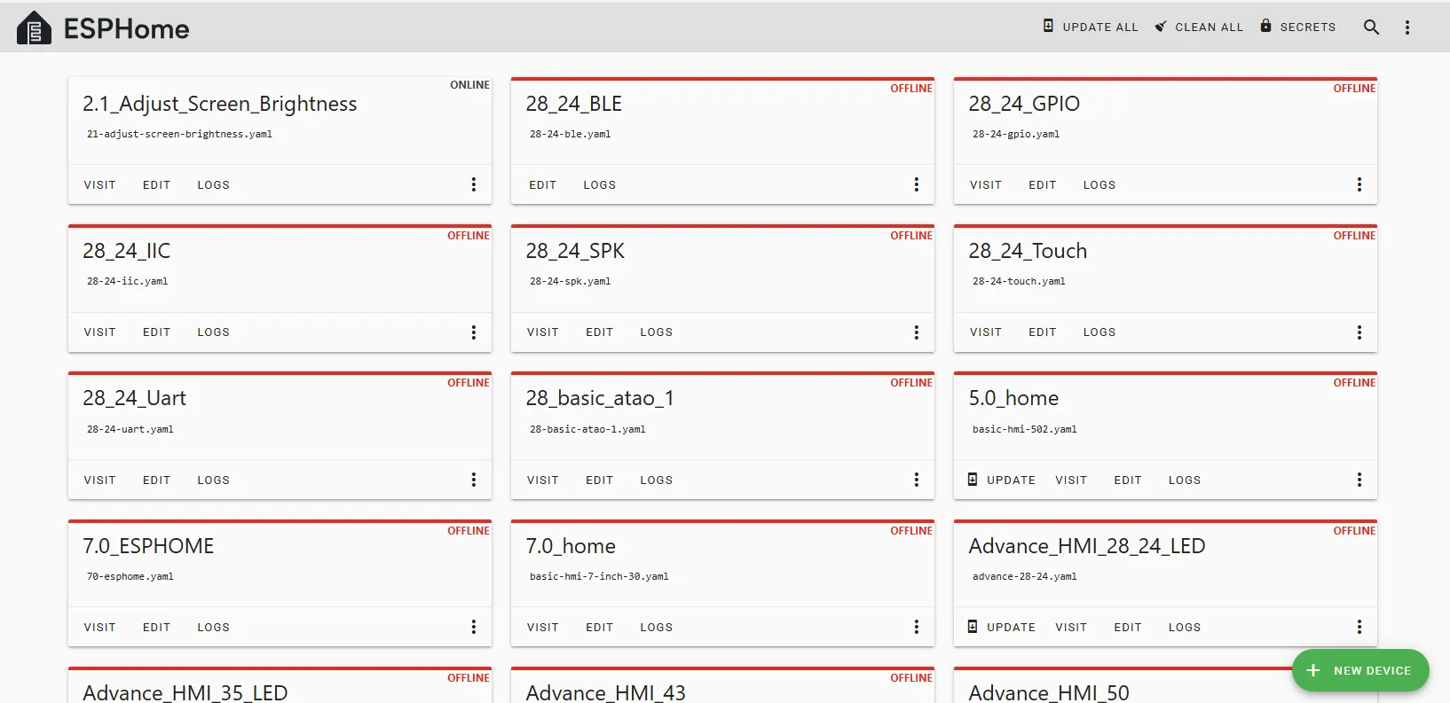 The following operations assume you have completed the installation steps in Lesson 1 and arrived at the ESPHome main page.