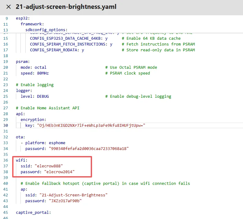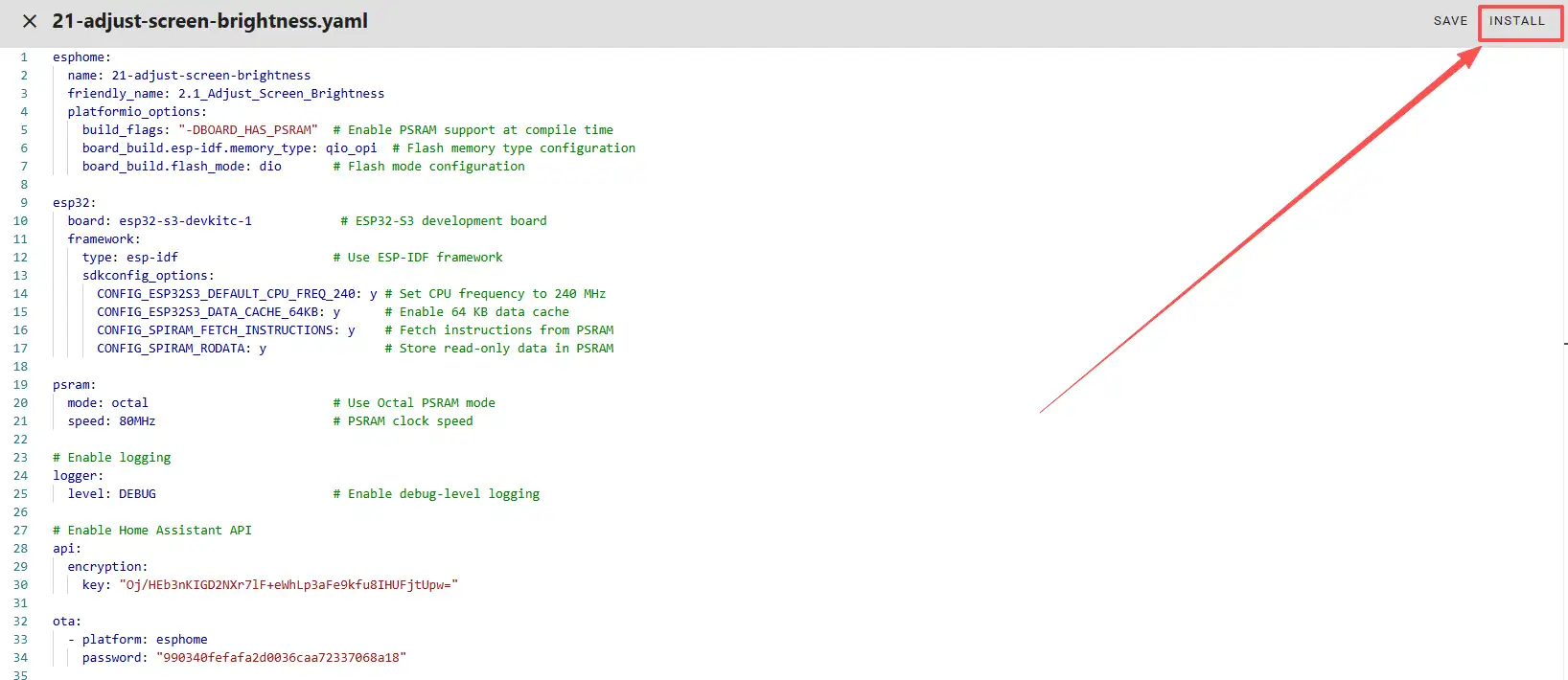 Next, we will explain the key parts of this code and show how to write code on the ESPHome platform to rotate the knob and control the screen brightness.