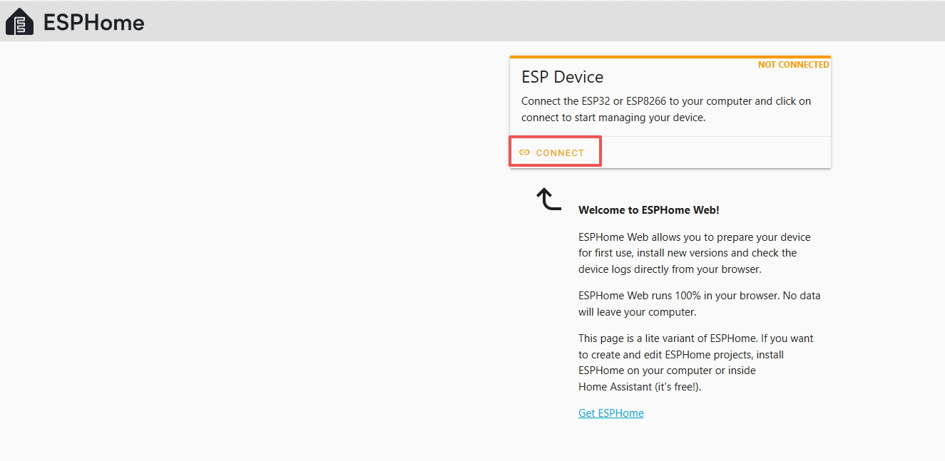 Open the following website: https://web.esphome.io/?dashboard_wizard