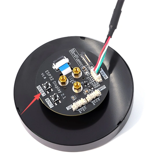 Press the RESET button on the CrowPanel 2.1inch-HMI ESP32 Rotary Display.
