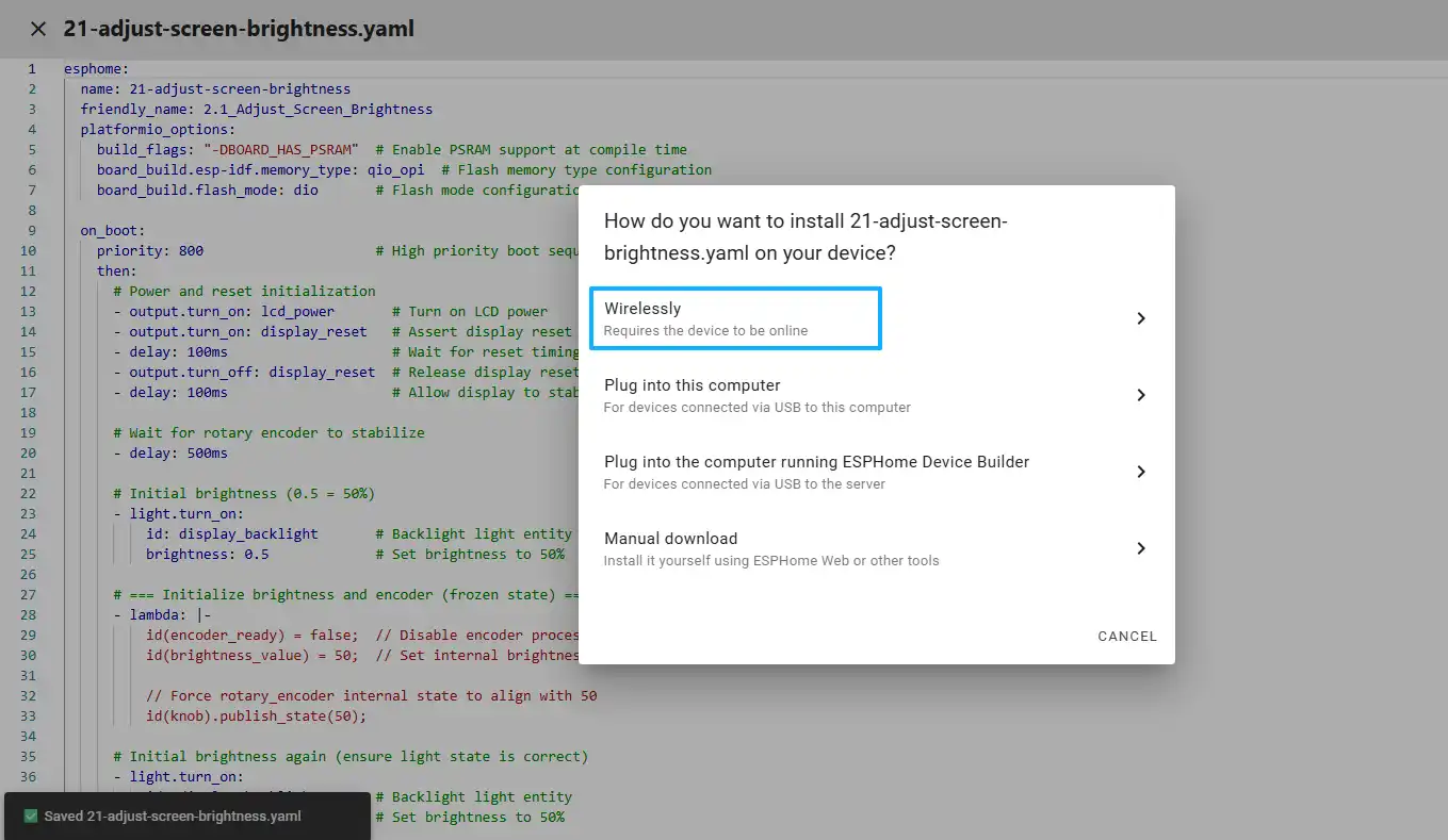 2.1 ESPHOME Lesson03 Adjust Screen Brightness