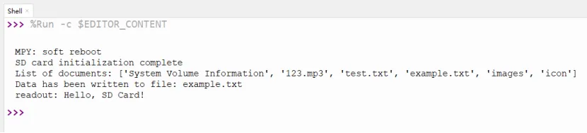 # Example: Initialize SD card and read/write files