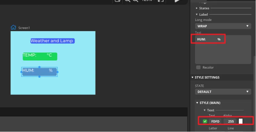 Add Label4 and Label5 to display the values of temperature and humidity