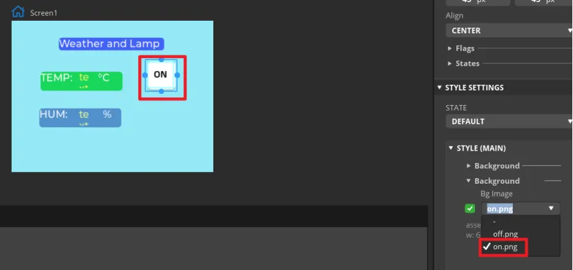 Add an identification symbol to the button. The button in this tutorial controls the LED switch, so you only need to mark the button "on" and "off". You can add LABEL widgets or add a background images to the button. This tutorial will demonstrate how to add a background image to a button.