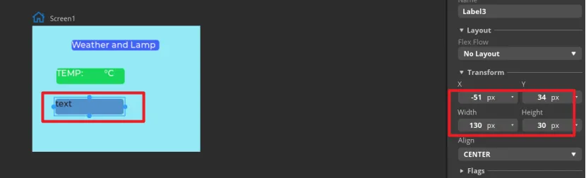 Add Label2 and Label3 as labels for temperature and humidity in the same way.