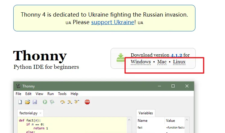 Go to the website https://thonny.org/ and download the corresponding software version (here we take the Windows version as an example)
