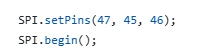 then, call SPI.setPins(47, 45, 46) to manually specify the hardware SPI pins (corresponding to the SPI clock, data input, and data output pins respectively). Finally, execute SPI.begin() to start the SPI bus, and SPI is the core protocol for communication between the microcontroller and the LR1121 chip, which is a necessary prerequisite for driving the wireless module.