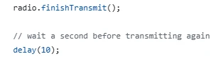 Then, it calls the "radio.finishTransmit()" function to complete the post-transmission operations, turns off the transmission circuit, resets the RF switch to reduce power consumption and ensure the module is in a normal state, and then delays for 10 milliseconds to control the transmission interval.