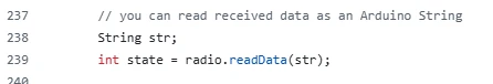 Then, the readData function is called to read the received data as a string format and obtain the reception status.