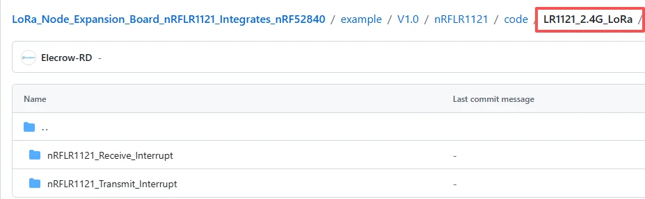 The "nRFLR1121_Receive_Interrupt" file is used for receiving data.