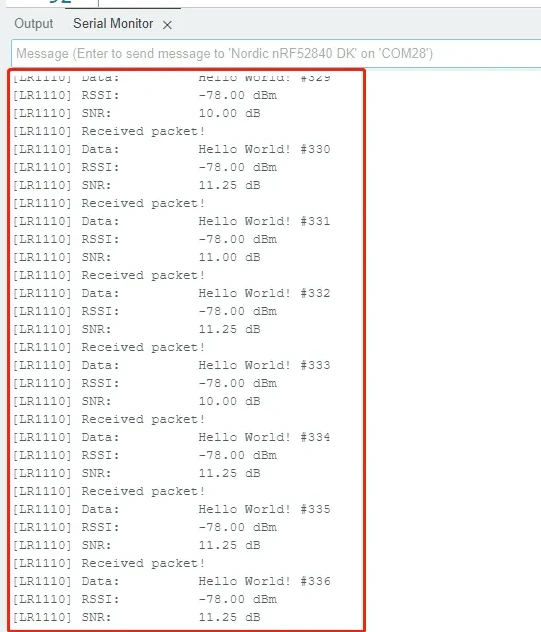 Subsequently, the status is judged and processed - if the status is successful, the received success prompt, complete data content, signal strength RSSI, and signal-to-noise ratio SNR are printed through the serial port.