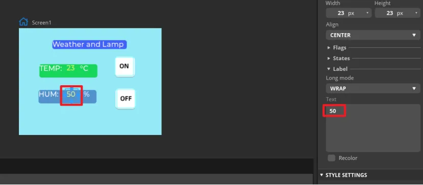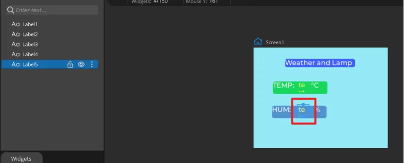 Add Label4 and Label5 to display the values of temperature and humidity