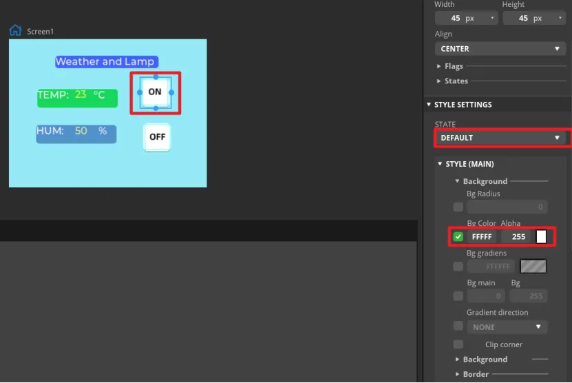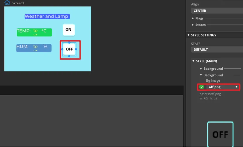 Add an identification symbol to the button. The button in this tutorial controls the LED switch, so you only need to mark the button "on" and "off". You can add LABEL widgets or add a background images to the button. This tutorial will demonstrate how to add a background image to a button.