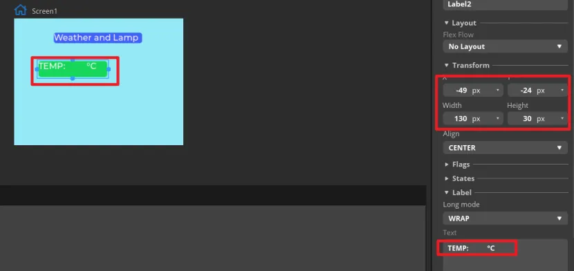 Add Label2 and Label3 as labels for temperature and humidity in the same way.