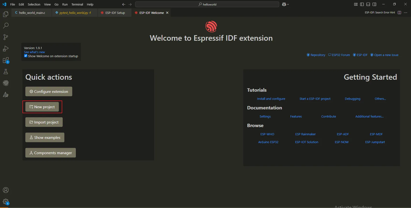 4. Create a new IDF project.¶