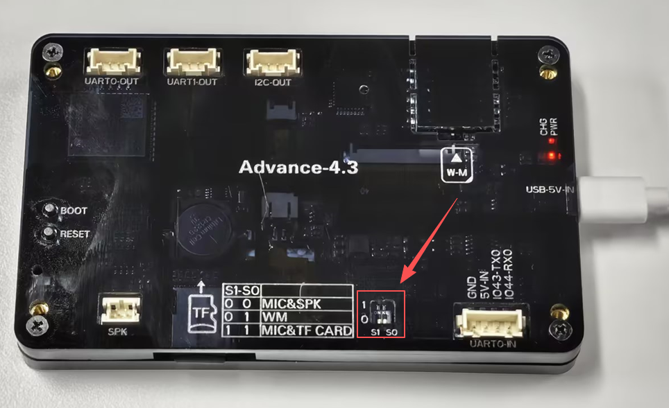 Note:Plug a speaker into the "SPK" interface,Connect the development board to the computer with a Type-C cable.