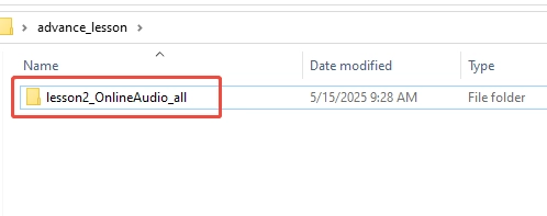 Step1:Download the files for lesson 2 from https://drive.google.com/drive/folders/1r0Ku8p0Dr2pAhmPRk9h9bQyBQxOsgfWu and extract them, as shown below: