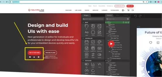 Enter the https://squareline.io/ to download the SquareLine installation file.