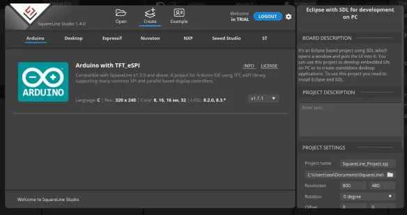5.1 Create a new SquareLine Studio project.¶