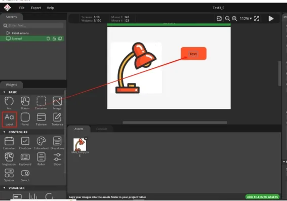 Drag and drop from the left sidebar, select Label, and drag into the interface.