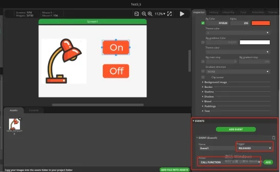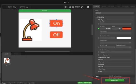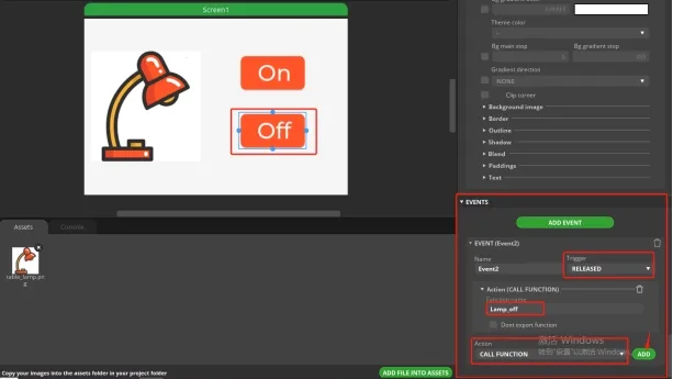 Similarly, add an event to the Off button. The operation process is the same as above.