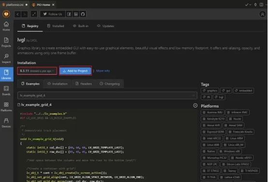 Click on the LVGL library.