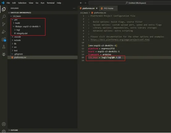 Note: If the platformio.ini file remains unchanged, but the library that has just been added is present in the pio->libdeps->esp32-s3-devkitc-1 folder, then click on "Compile". The PlatformIO plugin will pop up a window prompting you to change the library dependency link in the platformio.ini file.