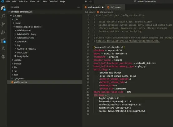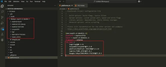 If the library is successfully added to the project, the interface will automatically jump to the PlatformIO.ini file and automatically generate the project dependencies.