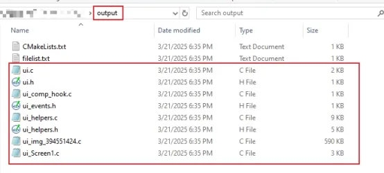 Find the UI source files and header files generated by SquareLine Studio.