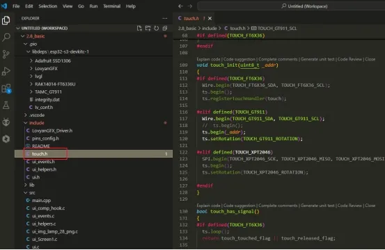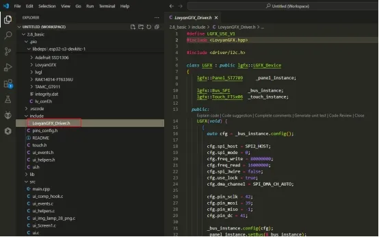 Copy the.h file in the UI file to the include folder of the PlatformIO project.