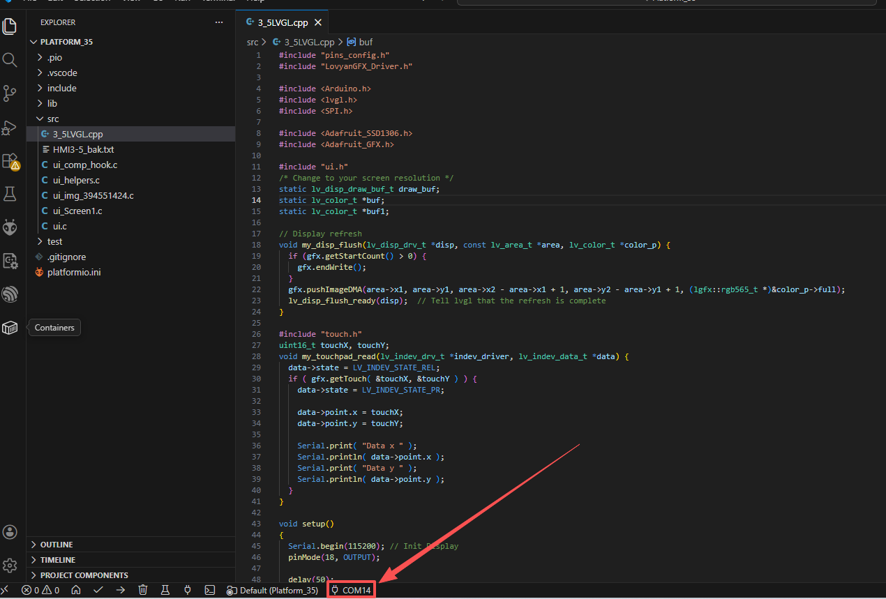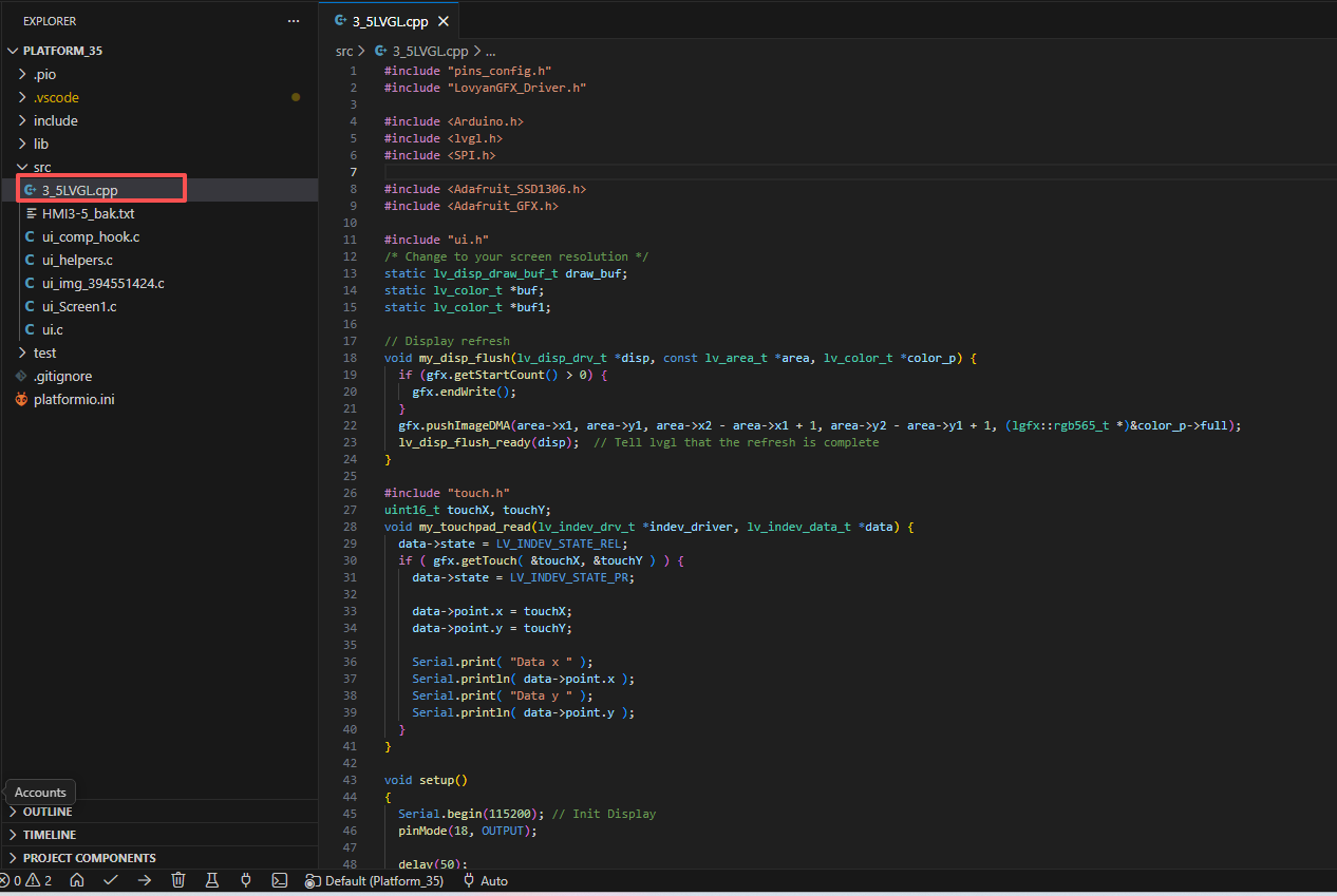 Copy the.c file in the UI file to the src folder of the PlatformIO project.