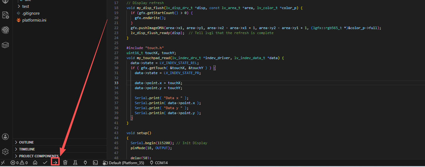 6.6 Burn the well-written PlatformIO project into the CrowPanel Advance ESP32 AI display¶