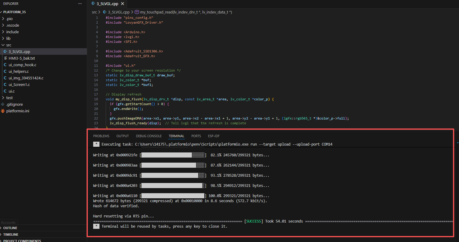 Place the lv_conf.h we provide to the path: .pio\libdeps\esp32-s3-devkitc-1-myboard in the project folder.