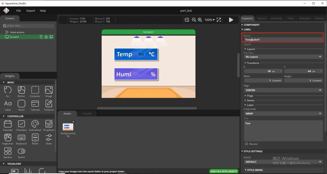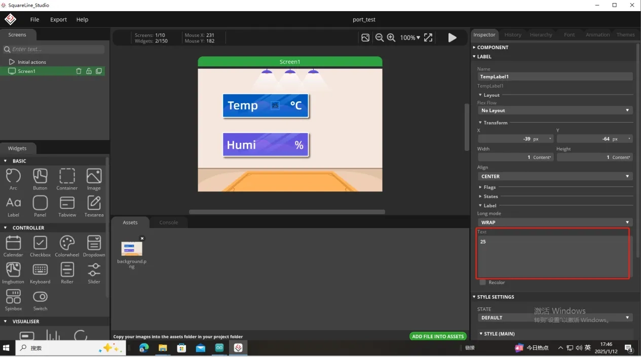 Since we need to display the temperature and humidity values on the screen, we need to add text in the two boxes for temperature and humidity.
