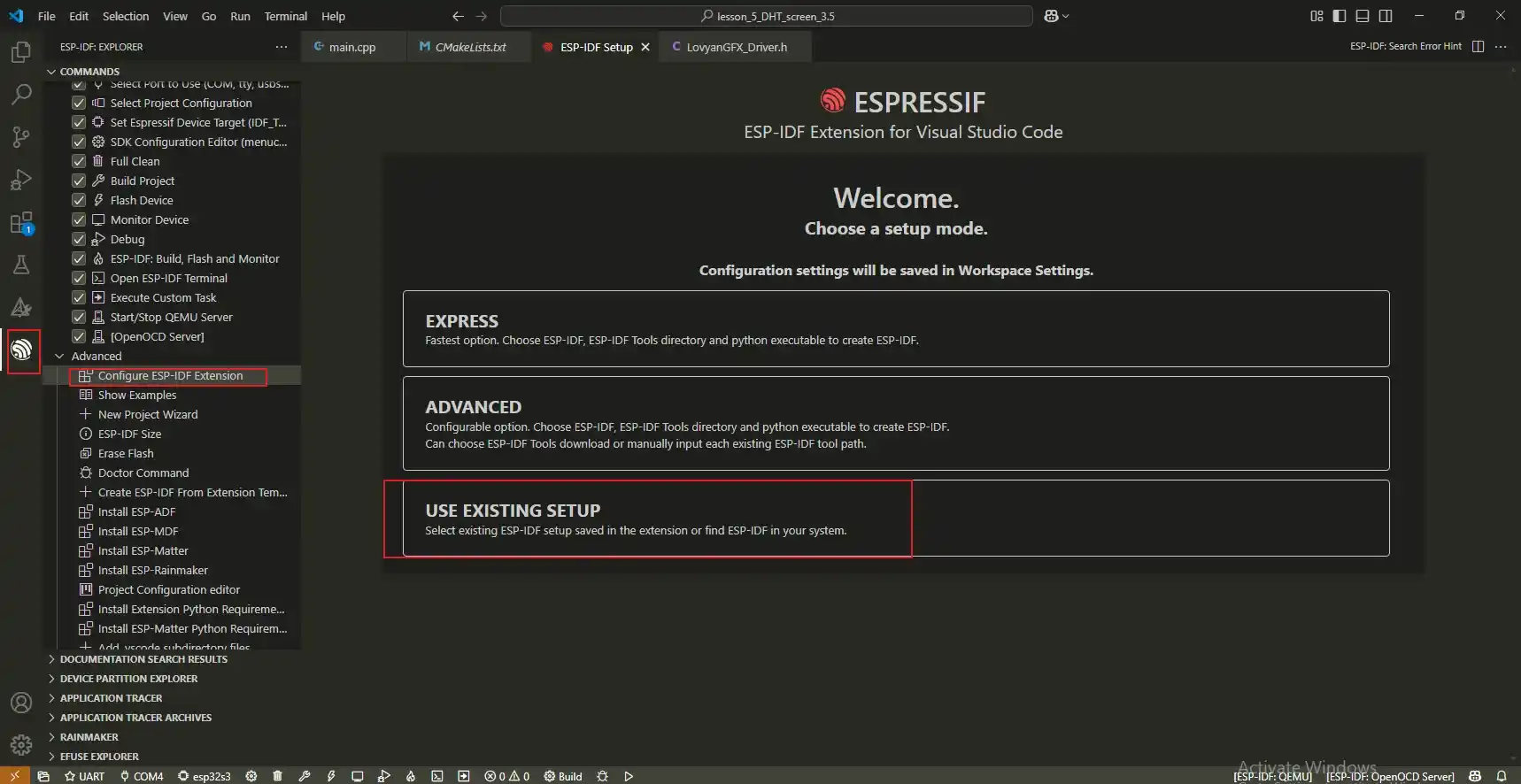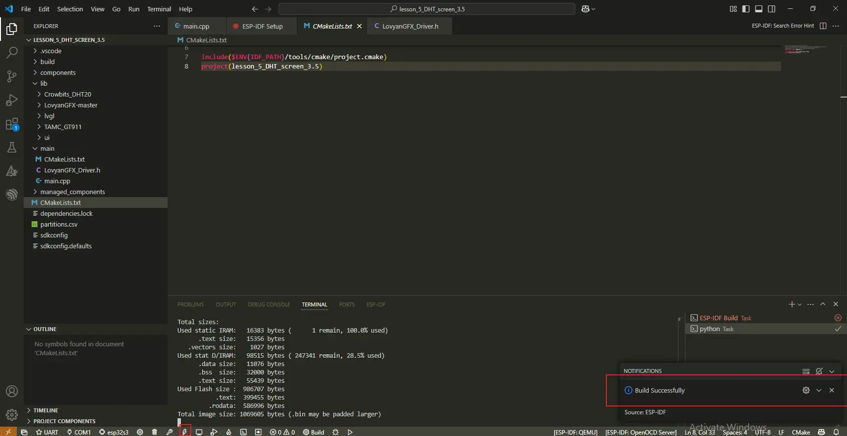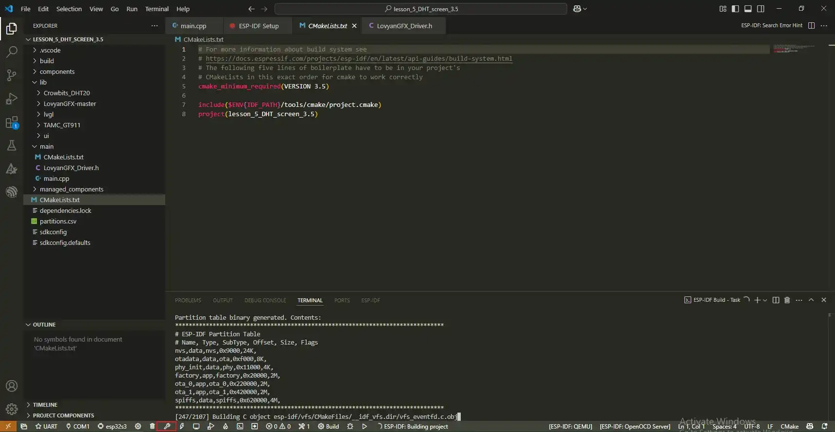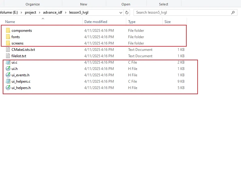 Then use VSCode to open the IDF project folder. Copy the generated .h and .c files into the corresponding folders of the project. (Here, I will use the code for the 3.5-inch version as an example.)