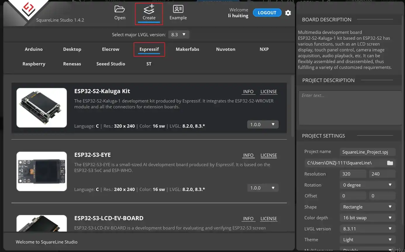 Open SquareLine Studio. If you haven't installed it, you can review the introduction of LVGL in Lesson 3.