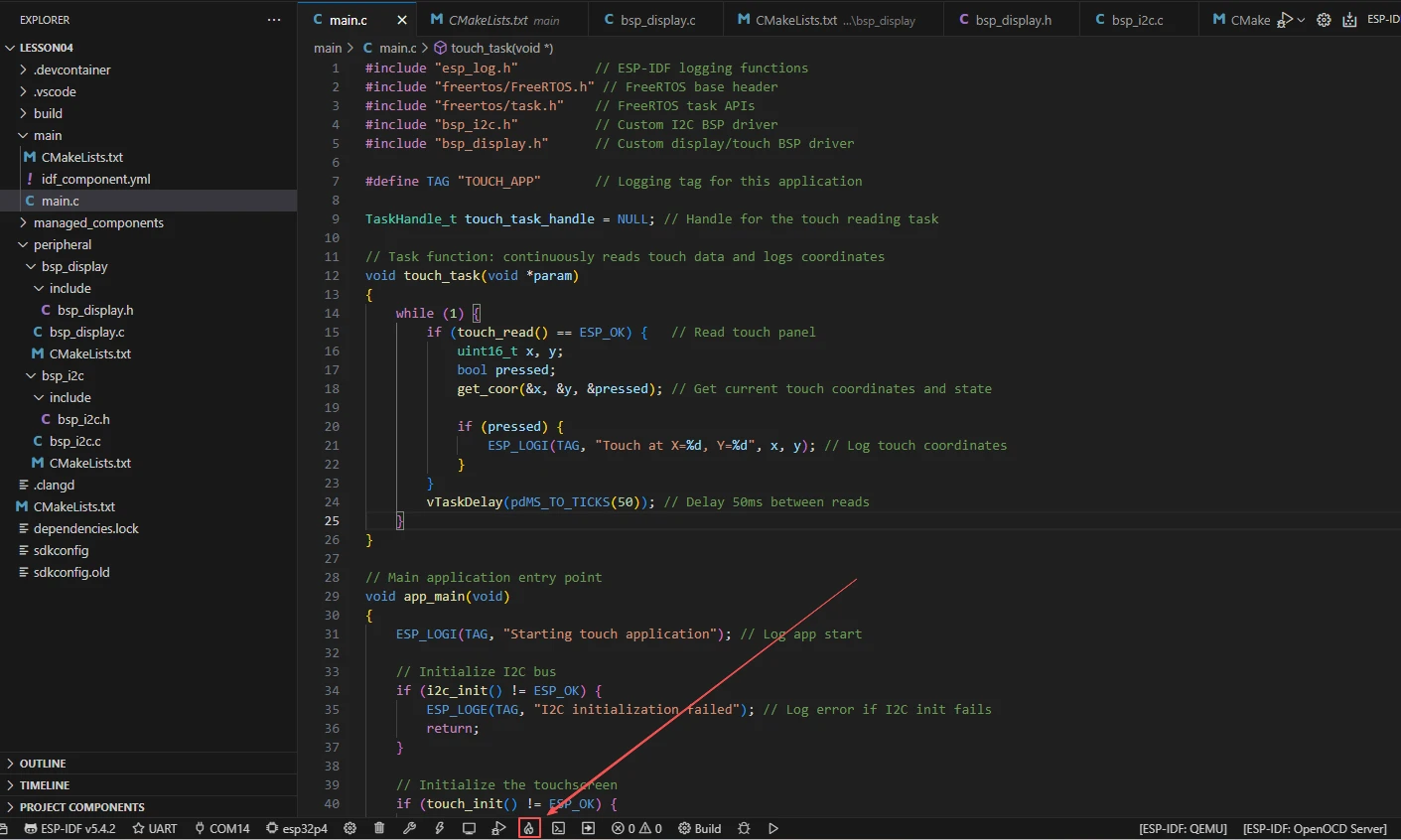 The previous touch function has already been realized using the bsp_usb and bsp_i2c components from the previous class.
