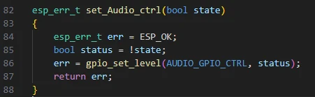 set_Audio_ctrl(true); ------ Turns on the audio hardware or amplifier.