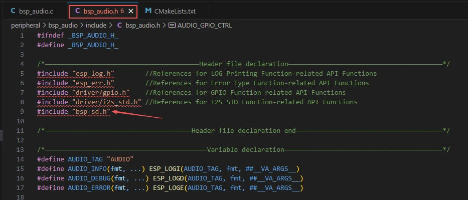 In this component, all the libraries we need to use are placed in the "bsp_audio.h" file for unified management.
