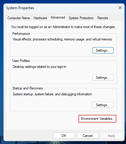 Click the "Environment Variables" button.