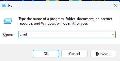 Press the "Win + R " keys, then type "cmd" to open the command line window.