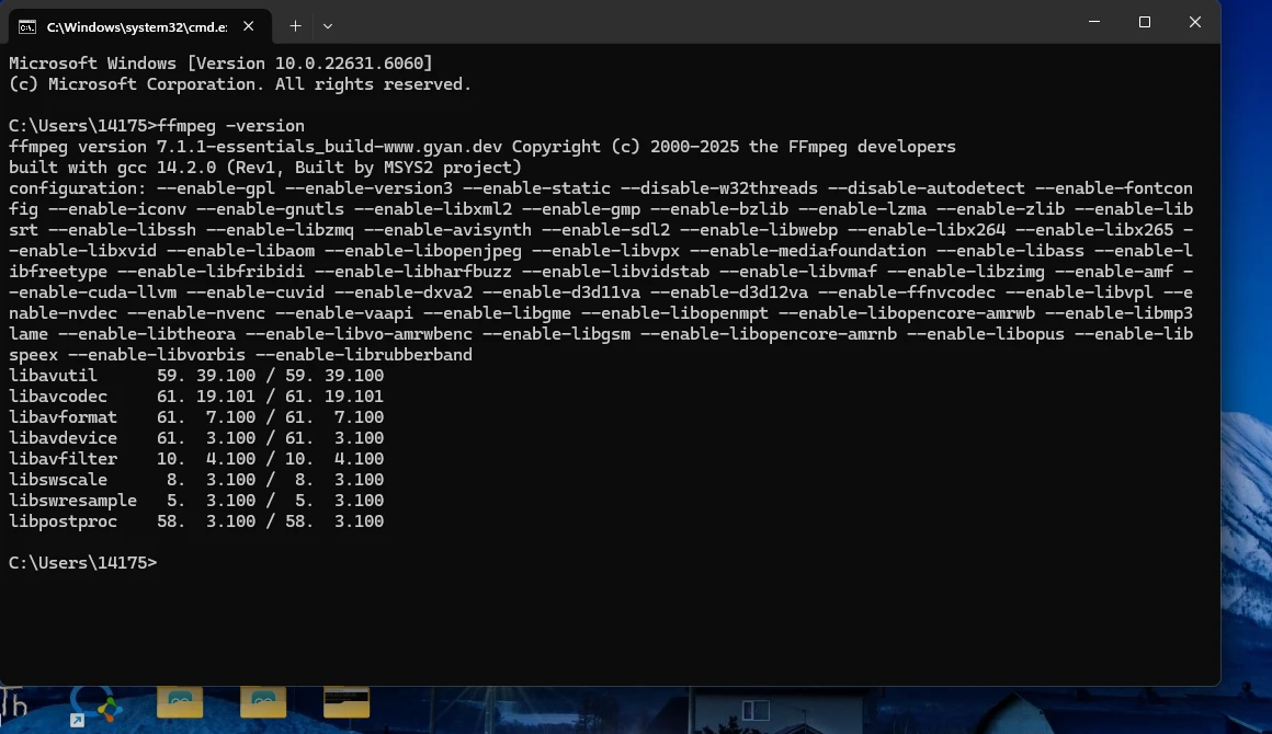 Type the following command in the command line to check the FFmpeg version: