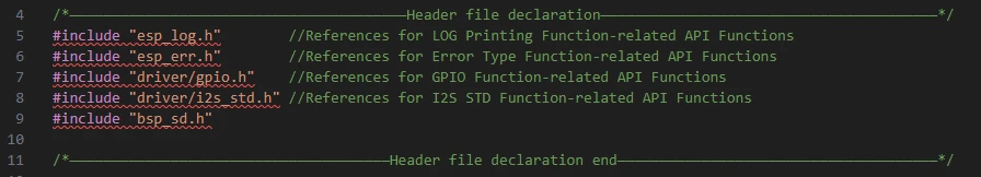 The reason why "driver" and "bsp_sd" are included here is that we have called them in "bsp_audio.h" (other libraries are system libraries, so no need to add them).