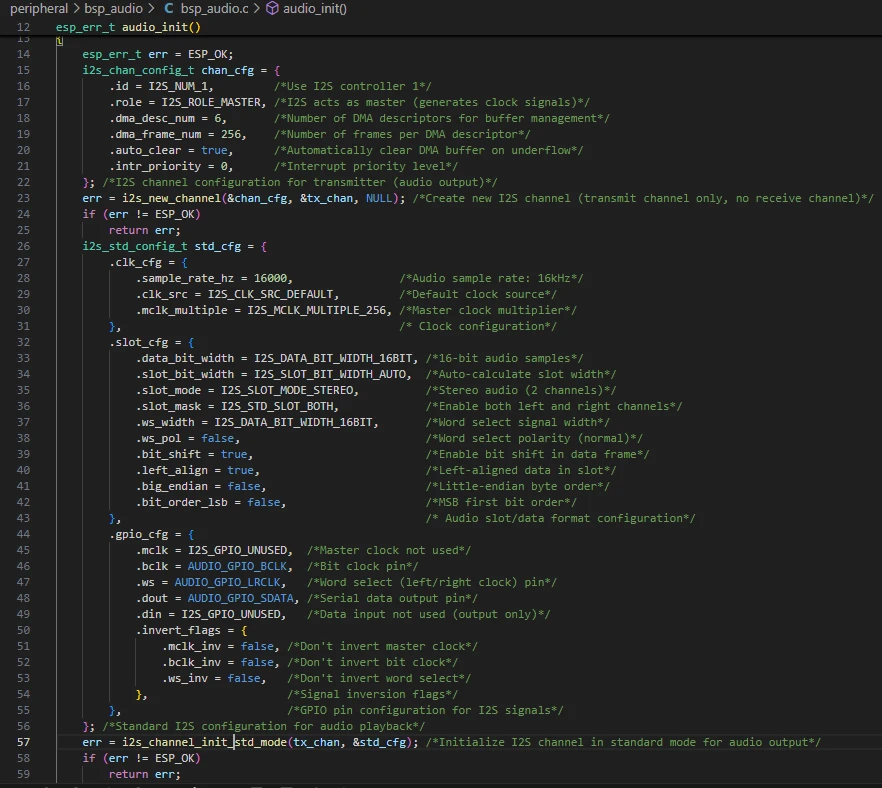 Let's first look at the audio playback component, which includes two files: "bsp_audio.c" and "bsp_audio.h".